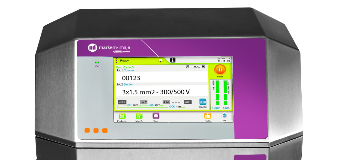 Markem-Imaje CIJ yazıcılar, Intelli'Design teknolojisi sayesinde standart modda %50, tasarruf modunda %60'a kadar daha az mürekkep tüketir. 18.000 saate kadar bakım aralığıyla plansız duruş maliyetlerini minimize eder. 5 yıllık TCO projeksiyonu için satış ekibimizle iletişime geçin.