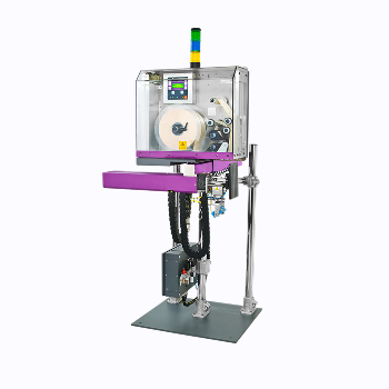 Etiket basım ve uygulama tek makinada — operatör müdahalesi yok.