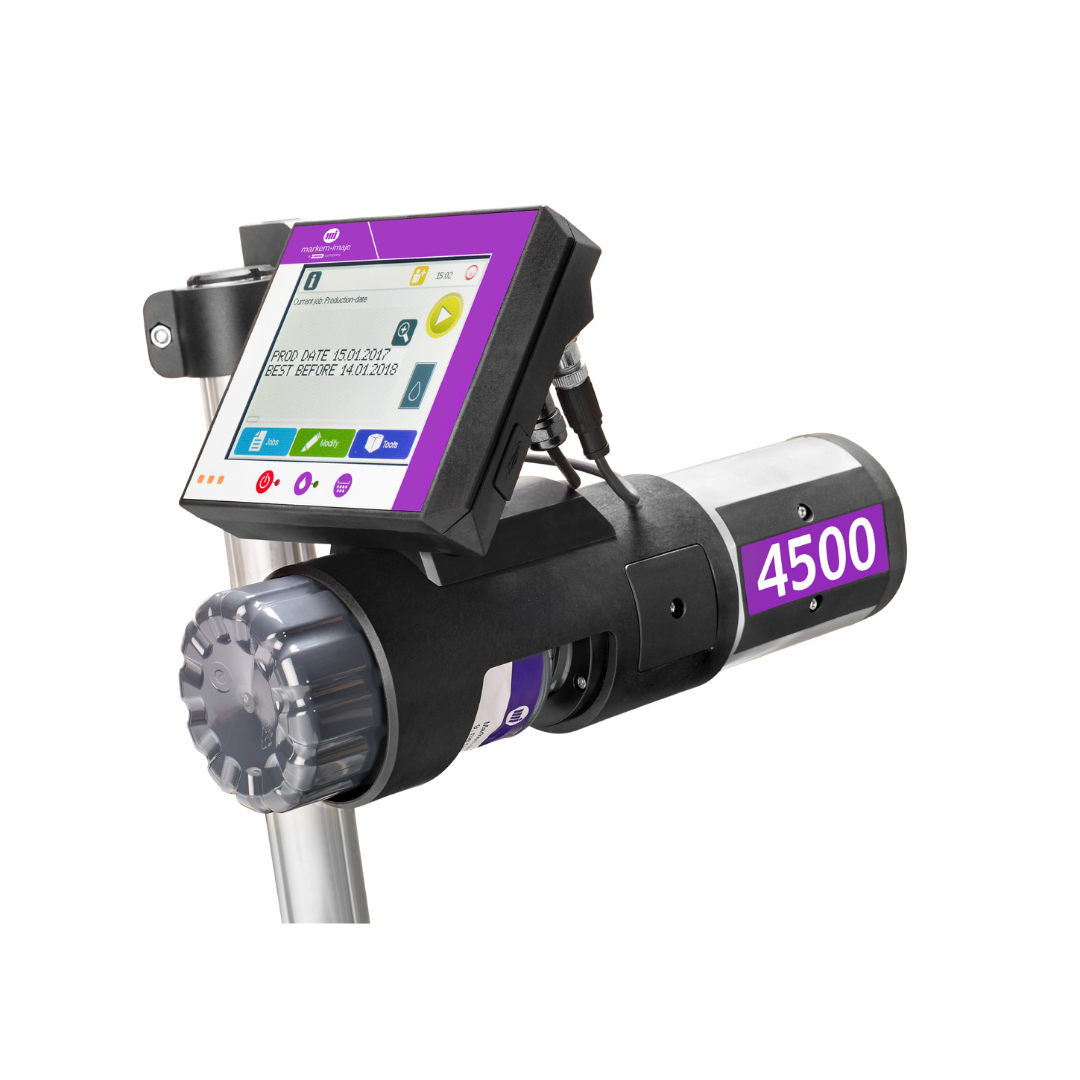 Gelişmiş bağlantı seçenekleri ile kullanım kolaylığı sağlayan Markem-Imaje 4500 büyük karakter valfjet koli kodlama cihazı çok tozlu ve nemli ortamlar için dizayn edilmiştir. (IP54)