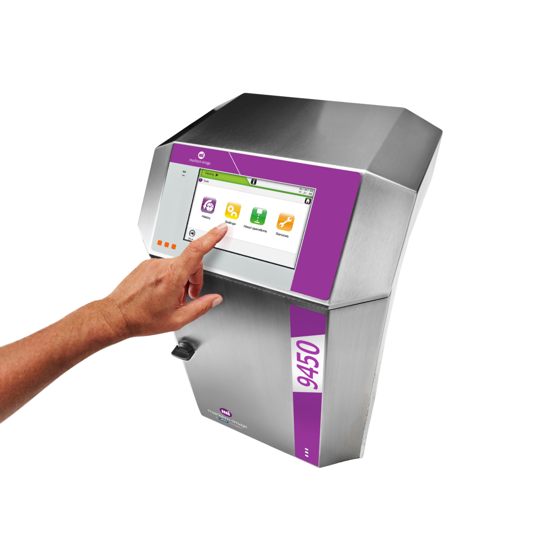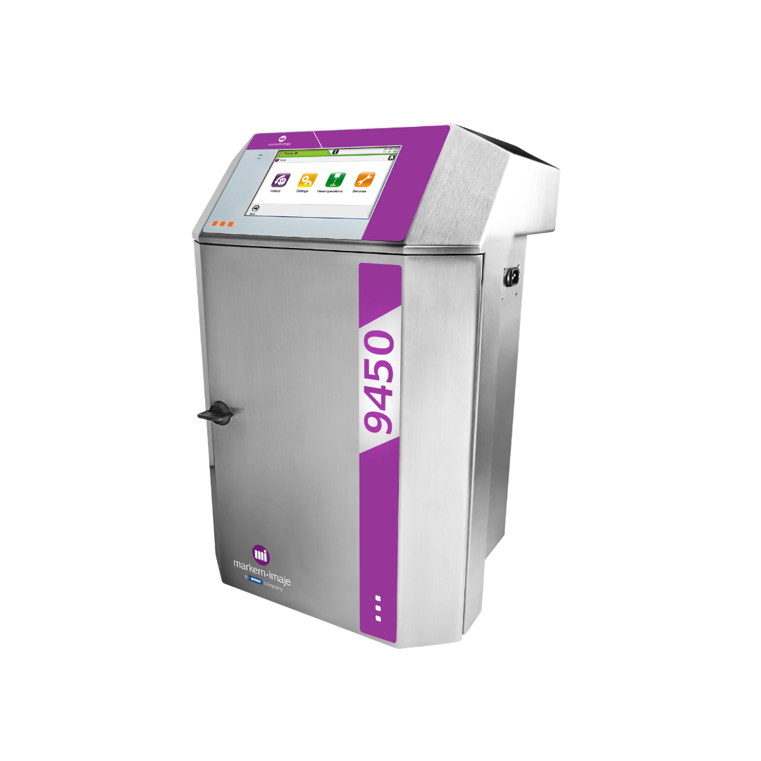 5 satıra kadar QR kod ve Data Matrix de dahil olmak üzere metin, logo, sembol vb. basabilme özelliğine sahip, hızlı mesaj oluşturulabilen 9450 inkjet tarih kodlama cihazları su veya endüstriyel deterjanla yıkamaya dayanıklı standart IP56, opsiyonel IP66 çevresel koruma derecesine sahiptir.