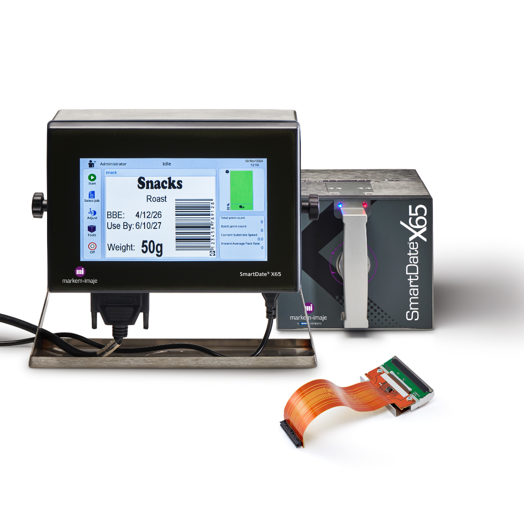 En zorlu, yüksek hacimli uygulamalar için tasarlanan SmartDate X65, esnek film ambalajlarında dakikada 455 pakete kadar hızlı ve kaliteli termal transfer kodlama yapabilir.